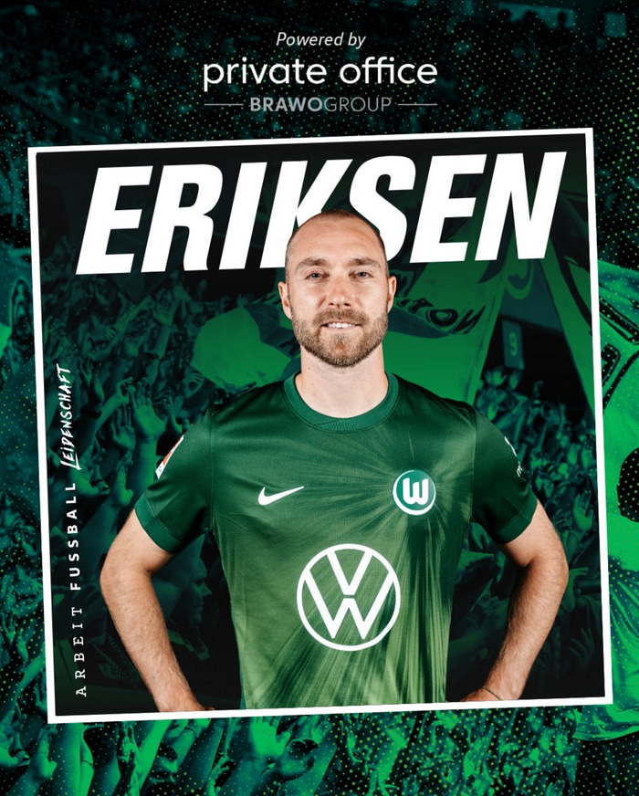 Danski miðjumaðurinn Christian Eriksen skrifaði í dag undir tveggja ára samning við þýska félagið Wolfsburg.