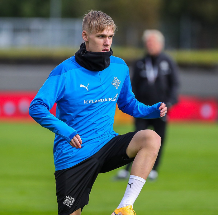 „Tveim dögum eftir leik eru menn eilítið stífir sem er eðlilegt eftir erfiðan leik. Kári Árnason mun ekki spila næstu tvo leiki. Arnór Sigurðsson kom til liðs við hópinn í gær og er í smá vandræðum með ökklann, það er spurningarmerki með hann hvort hann verði klár. Ég mun svo sjá eftir æfinguna í dag hvernig staðan er á hinum," sagði Erik.