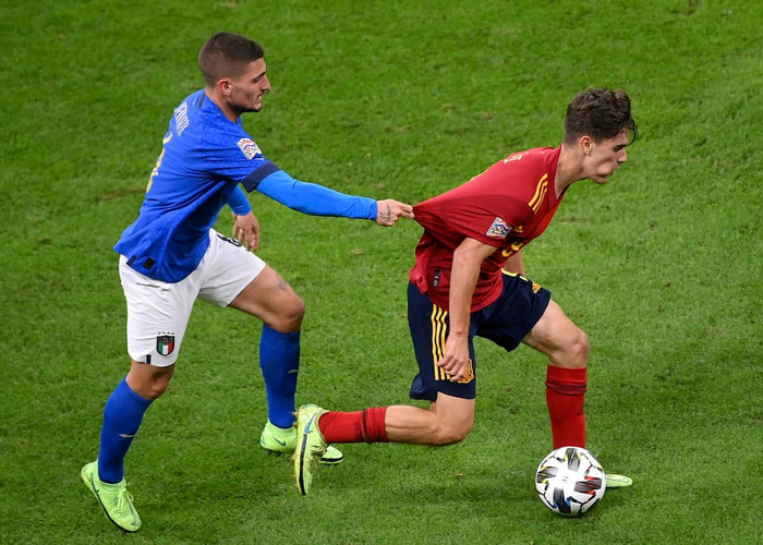Hinn 17 ára gamli Gavi er aftur í byrjunarliði spænska liðsins en hann lék glimrandi vel á miðjunni í sínum fyrsta leik fyrir A-landsliðið í sigrinum á Ítalíu í undanúrslitum.