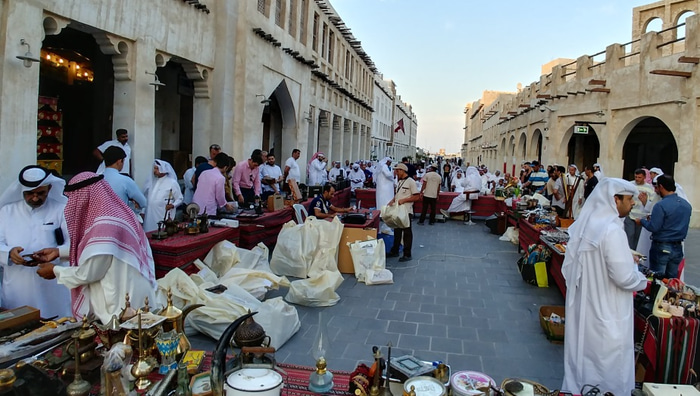 Í þessu litla Furstadæmi búa 350 þúsund Katarar. Gerir samanburðinn við Ísland enn skemmtilegri! Alls búa þó 2,7 milljónir manns í Katar en stærð landsins er um það bil 10% af stærð Íslands. Heimamenn þurfa ekki að vinna svo erlent vinnuafl, mest frá Asíu, sér um öll láglaunastörf í landinu.