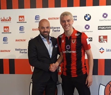 Axel Freyr Harðarsson minnkaði muninn enn frekar fyrir Víking rétt fyrir lok fyrri hálfleiks.