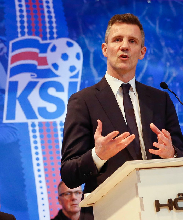 Í sigurræðu sinni sagðist Guðni ætla að gera allt sitt besta af heilum hug til að gera íslenskan fótbolta að stolti allra Íslendinga.
