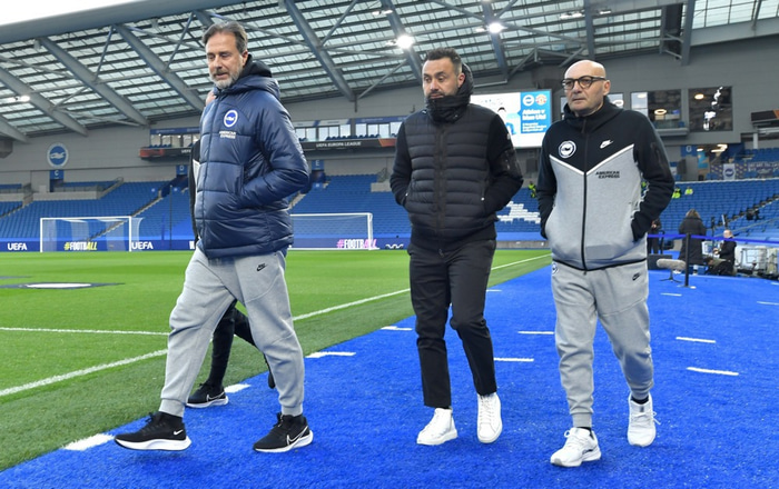Roberto De Zerbi, knattspyrnustjóri Brighton, var ekki á hliðarlínunni eftir að hafa farið í tannaðgerð.