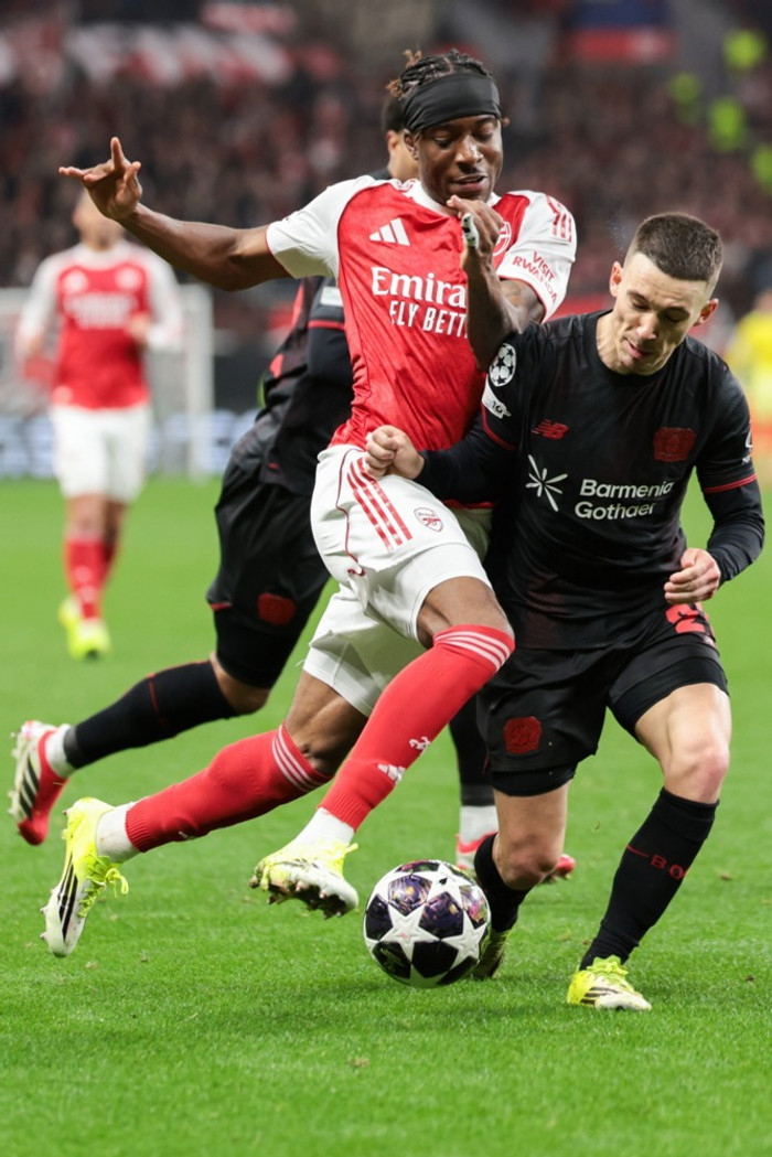 Noni Madueke kom inn af bekknum og breytti leiknum þegar Arsenal rétt marði jafntefli á útivelli gegn Bayer Leverkusen í kvöld.