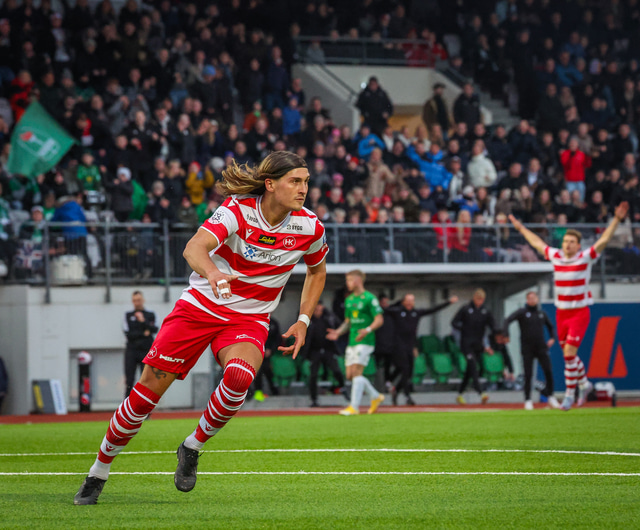 Titilvörn Íslandsmeistara Breiðabliks byrjaði illa í gær þegar liðið tapaði 3 - 4 gegn nýliðunum í HK á Kópavogsvelli. Kópavogur er því rauður. Hér að neðan er myndaveisla úr leiknum.
