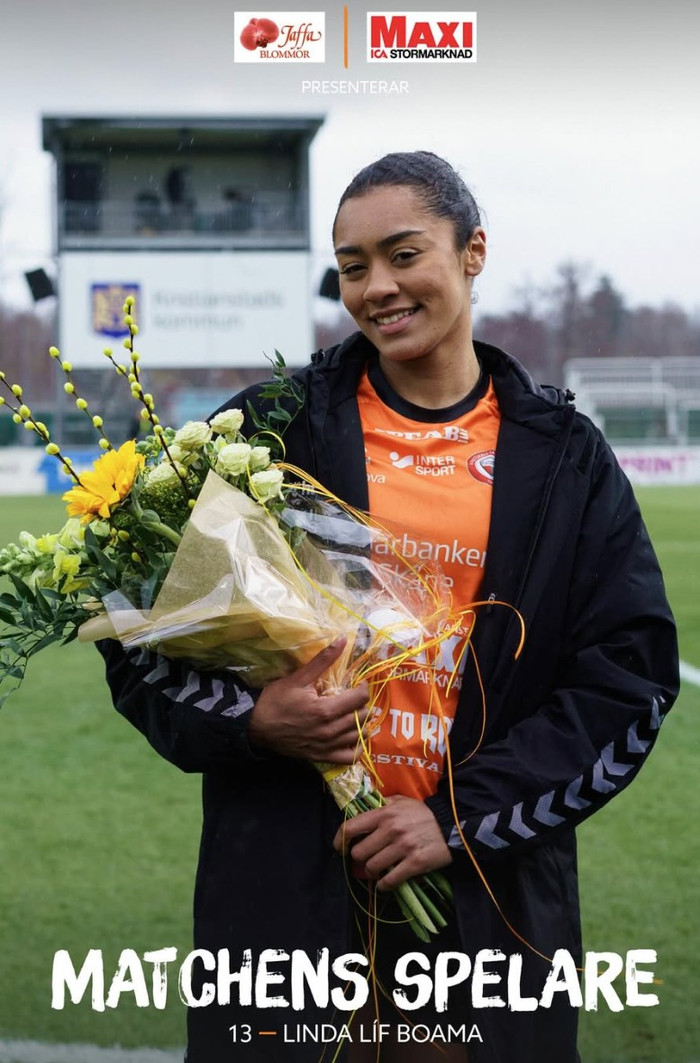 Linda Líf Boama hefur farið afar vel af stað í atvinnumennskunni með Kristianstad í Svíþjóð og segir fyrstu mánuðina hafa farið fram úr hennar væntingum.
