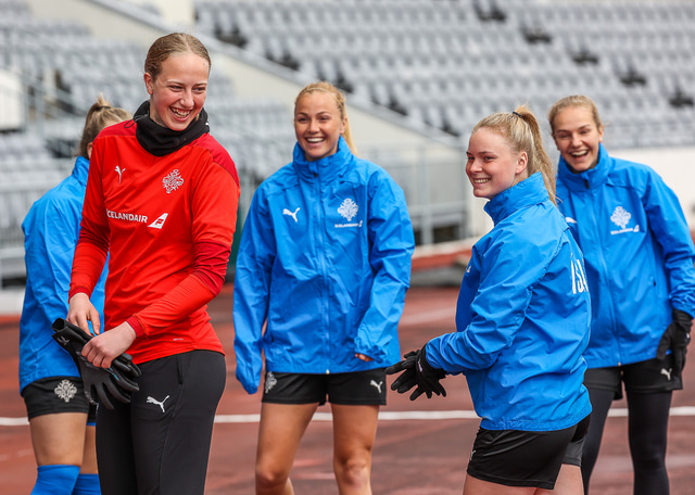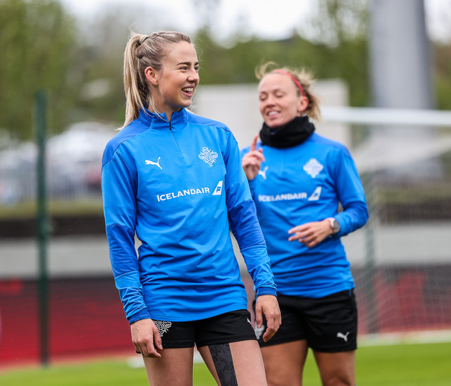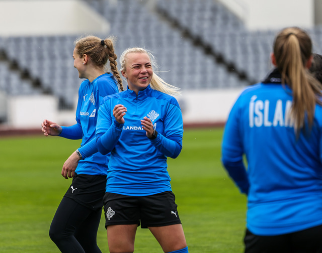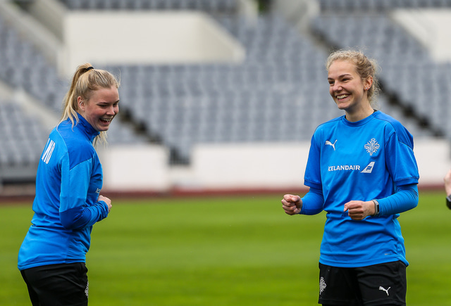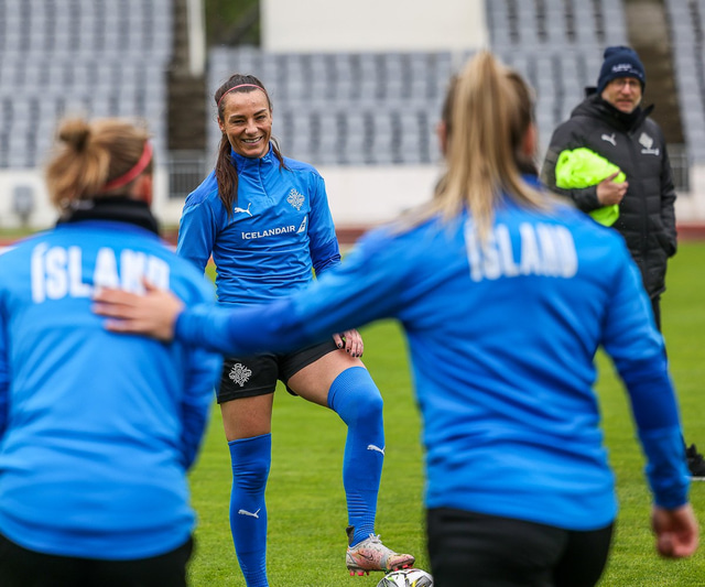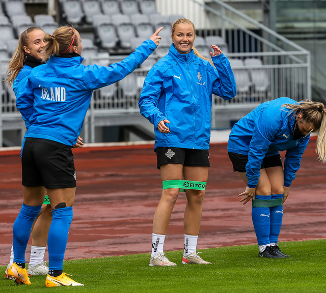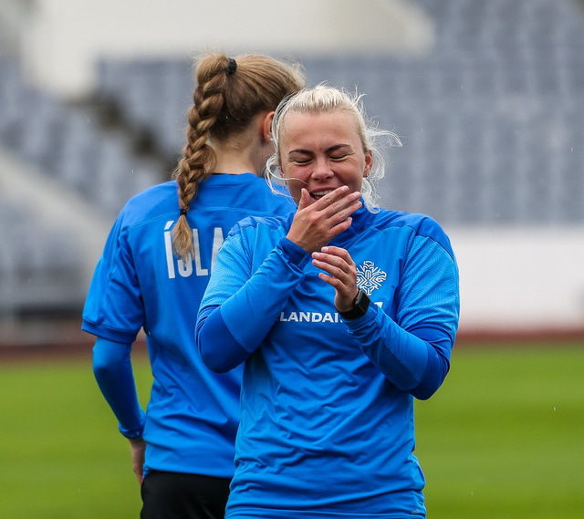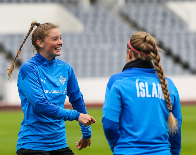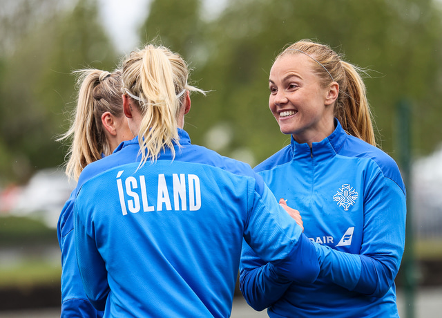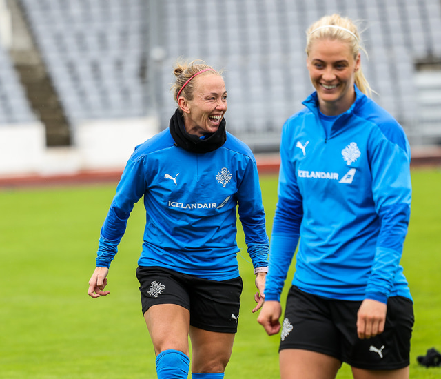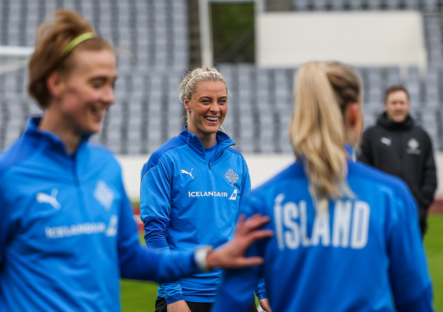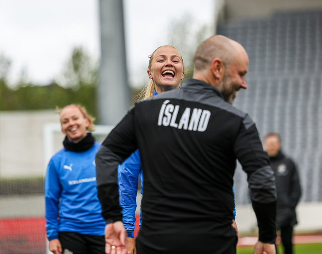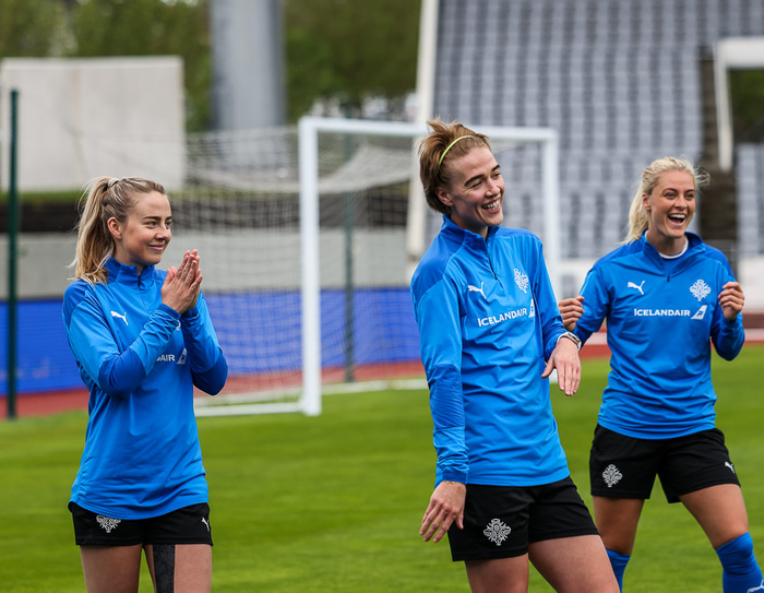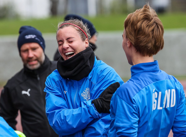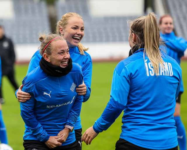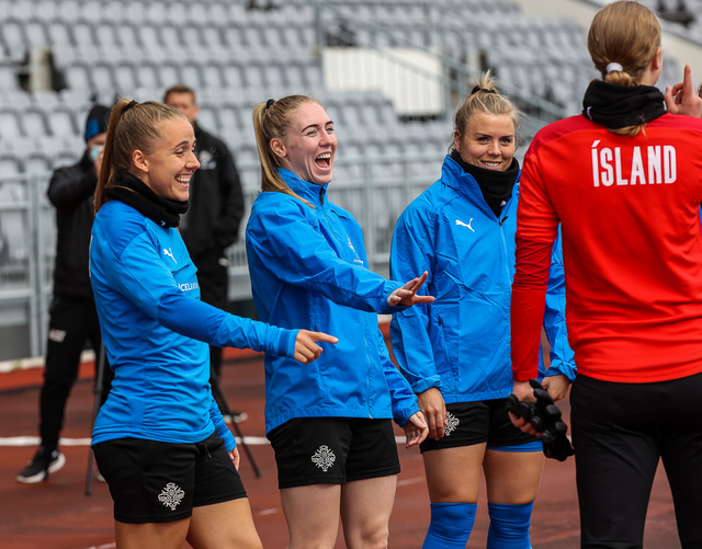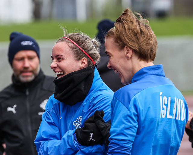 Ísland mætir Írlandi í vináttulandsleik á Laugardalsvelli klukkan 17:00 í dag. Hér að neðan má sjá myndaveislu af æfingu liðsins í gær en mjög létt var yfir hópnum.