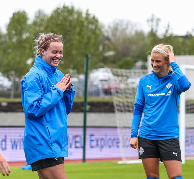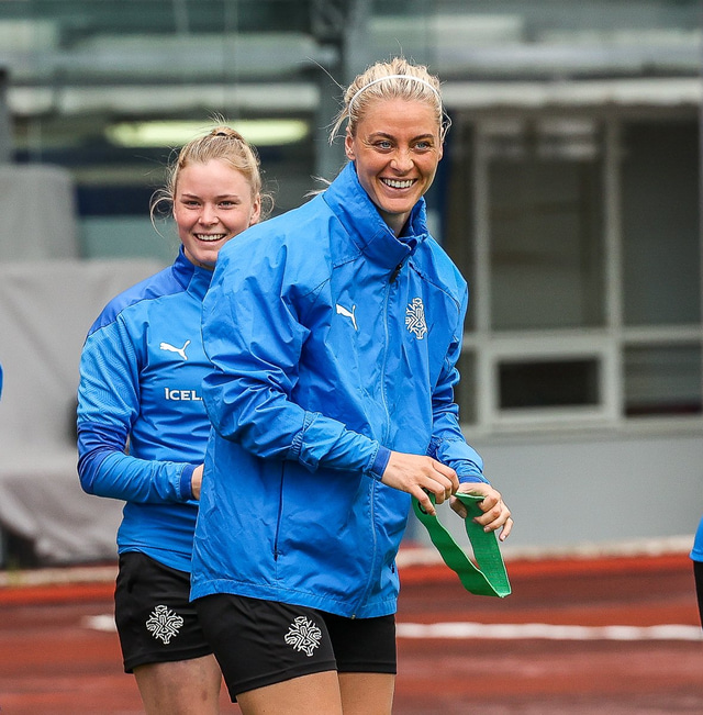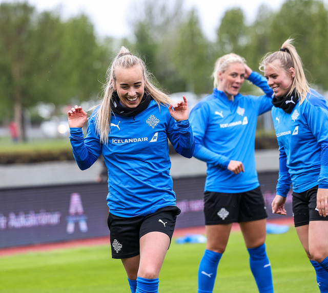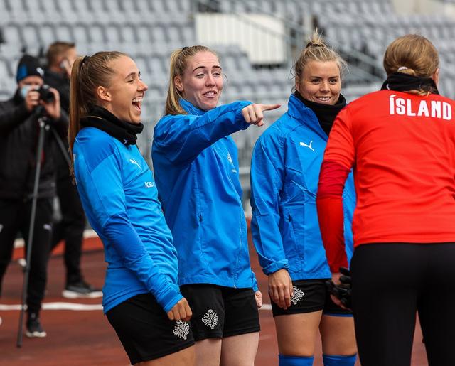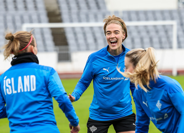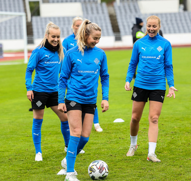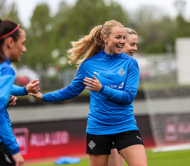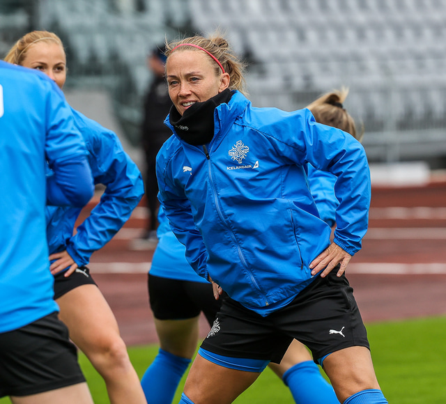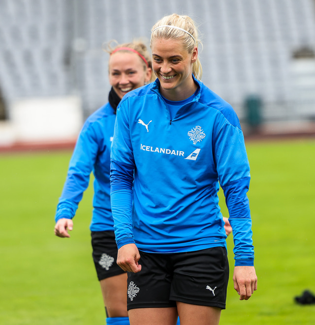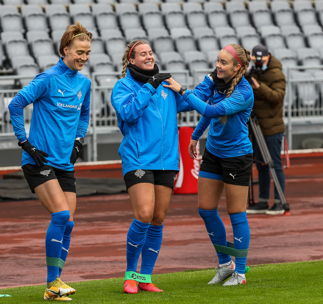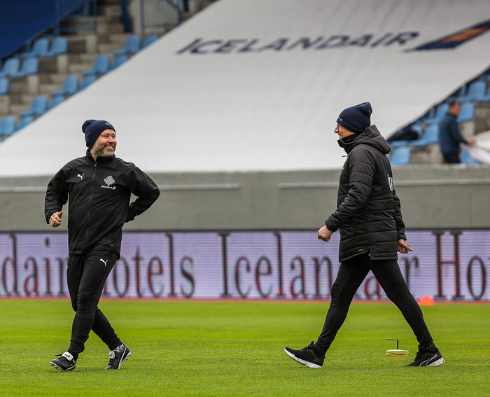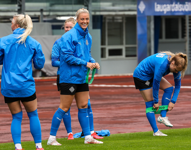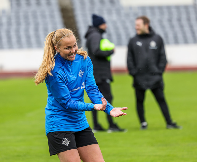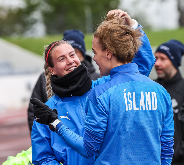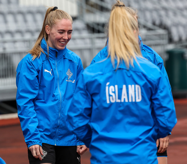 Ísland mætir Írlandi í vináttulandsleik á Laugardalsvelli klukkan 17:00 í dag. Hér að neðan má sjá myndaveislu af æfingu liðsins í gær en mjög létt var yfir hópnum.