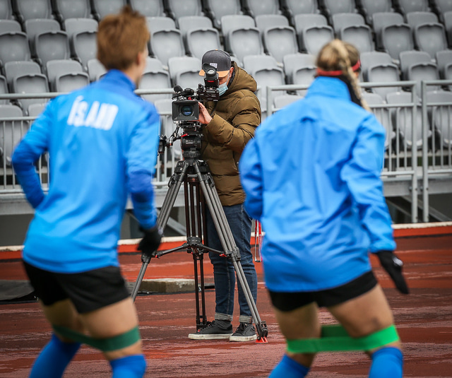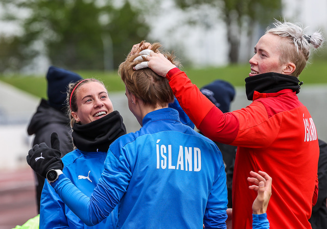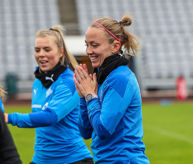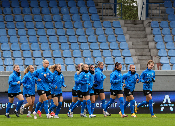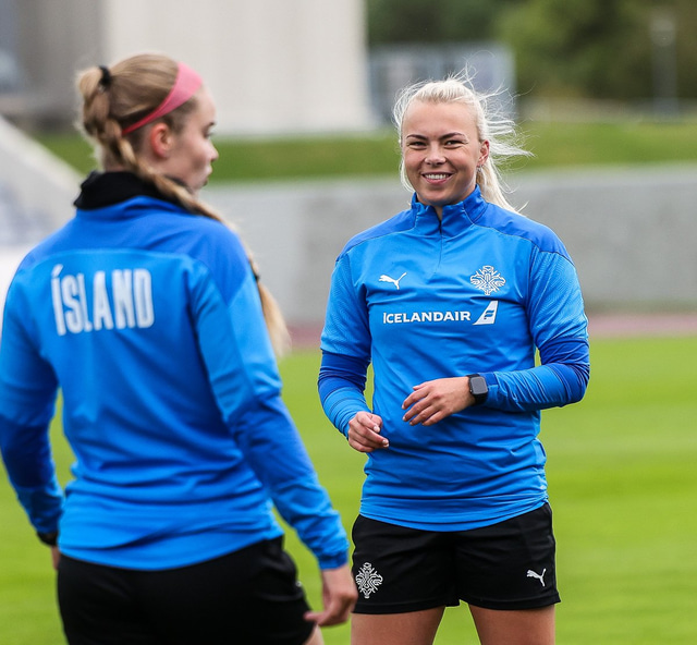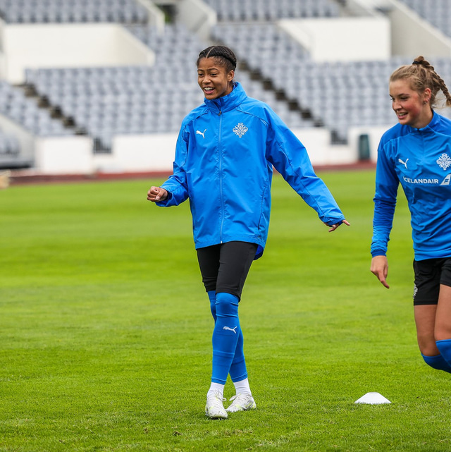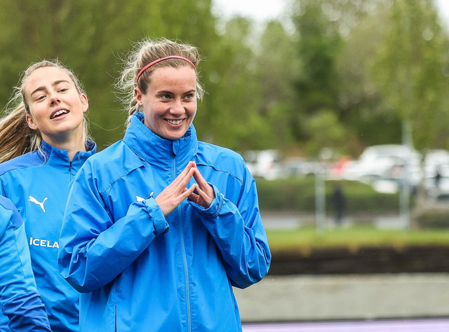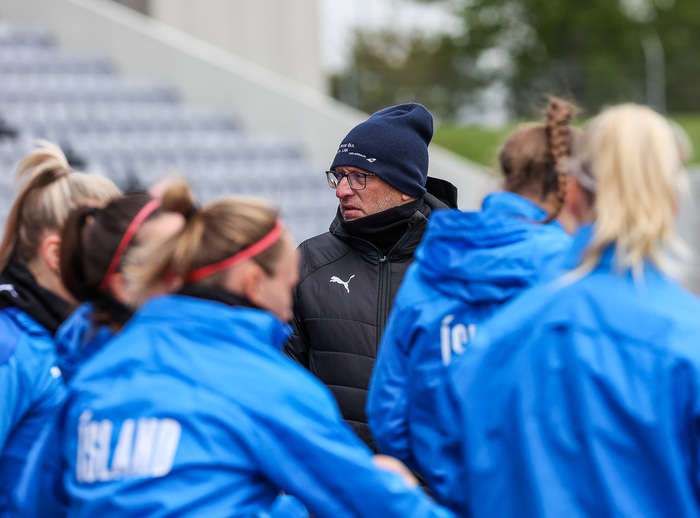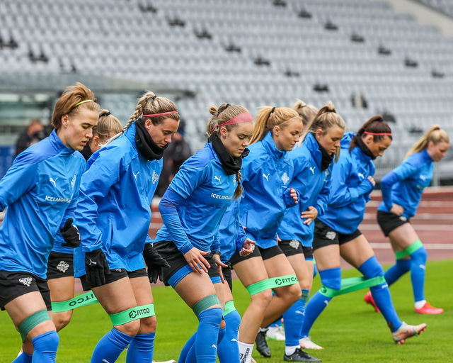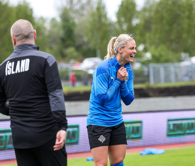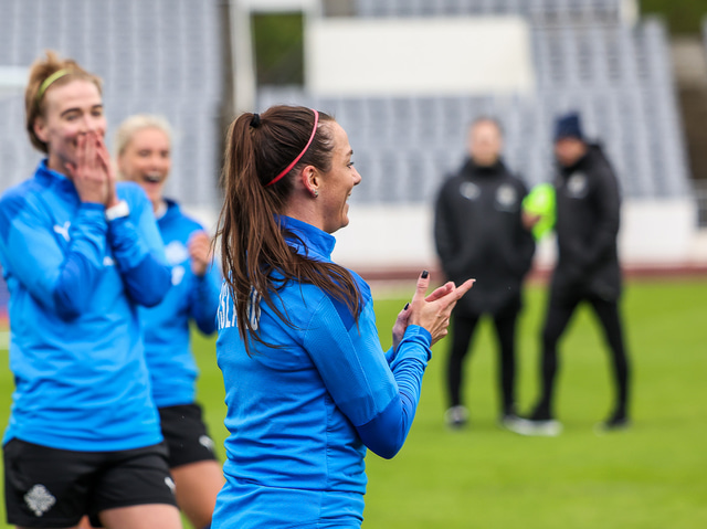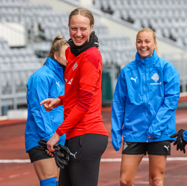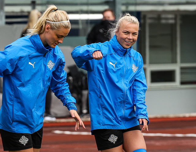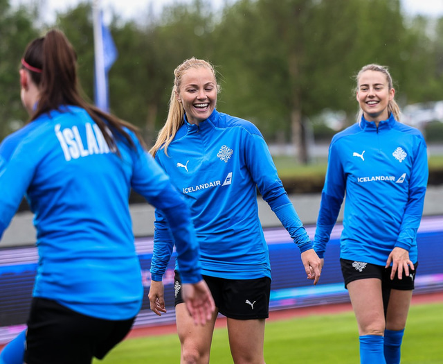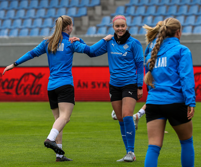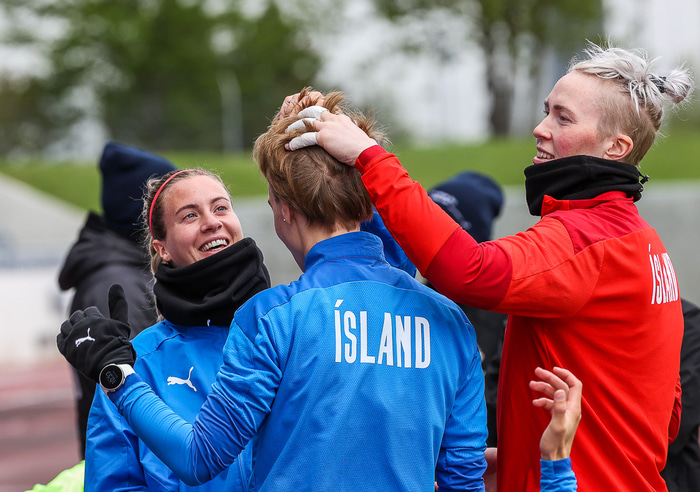 Ísland mætir Írlandi í vináttulandsleik á Laugardalsvelli klukkan 17:00 í dag. Hér að neðan má sjá myndaveislu af æfingu liðsins í gær en mjög létt var yfir hópnum.