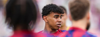 „Ég tók heimavinnuna með mér. Ég er í tímum á netinu og mér gengur vel. Ég vona að kennarinn verði ekki fúll út í mig," sagði Yamal við spænska fjölmiðla.