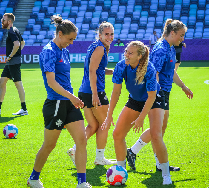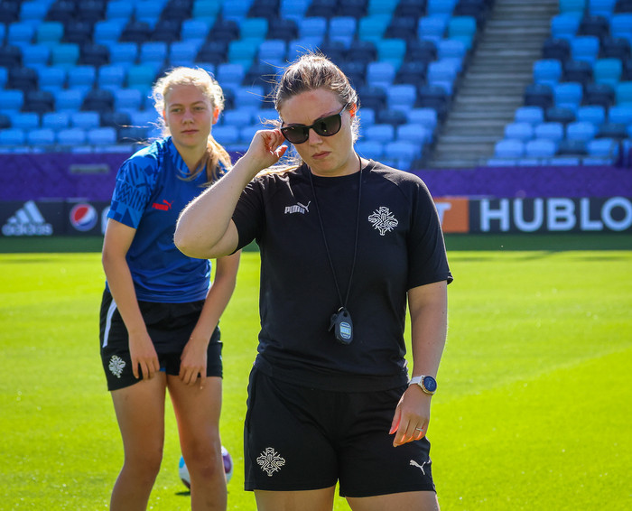 Dúna er styrktarþjálfari landsliðsins og fengu fjölmiðlar tækifæri til að ræða við hana á æfingasvæðinu.