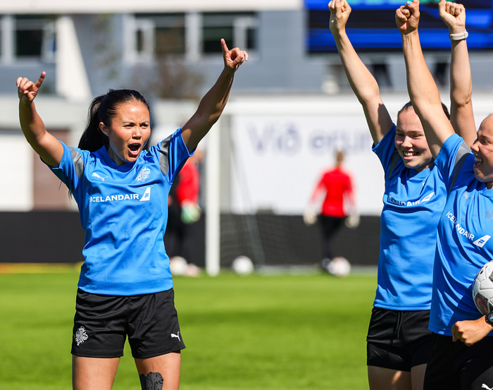Hvernig var tilfinningin að hefja fyrstu landsliðsæfinguna í gær? „Hún var ólýsanleg, geggjaður hópur, skemmtilegur og þéttur hópur og þær eru búnar að taka mjög vel á móti mér. Ég hlakka bara til að kynnast þeim betur," sagði Sunneva.
