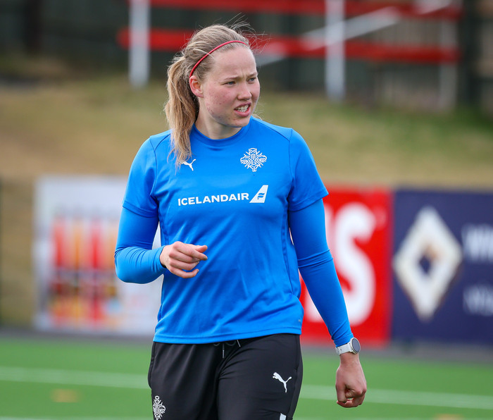 Hún var ekki sátt við það að vera á bekknu í síðustu tveimur leikjum Íslands á mótinu.