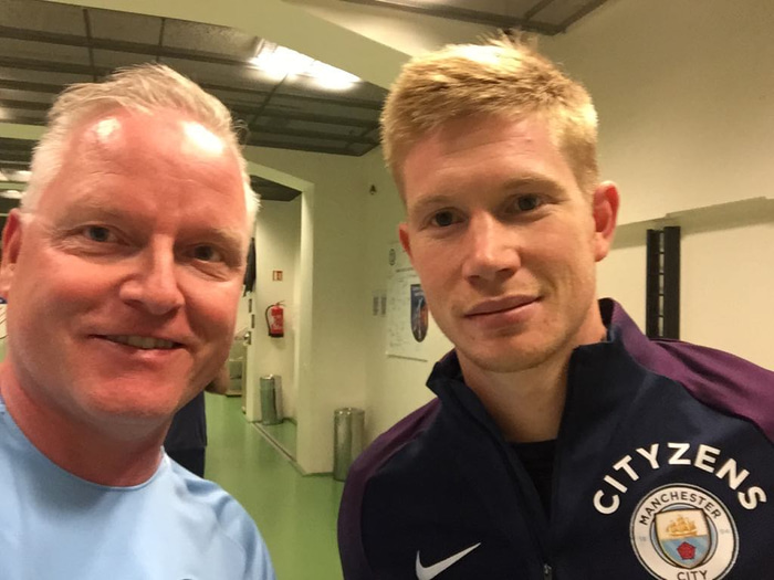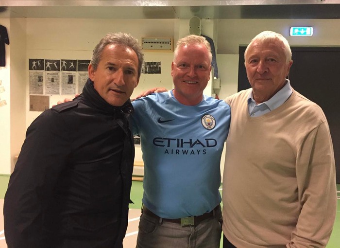 Með Txiki Begiristain, yfirmanni fótboltamála hjá Man City, og Mike Summerby, sendiherra hjá félaginu og fyrrum leikmanni.