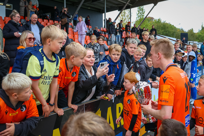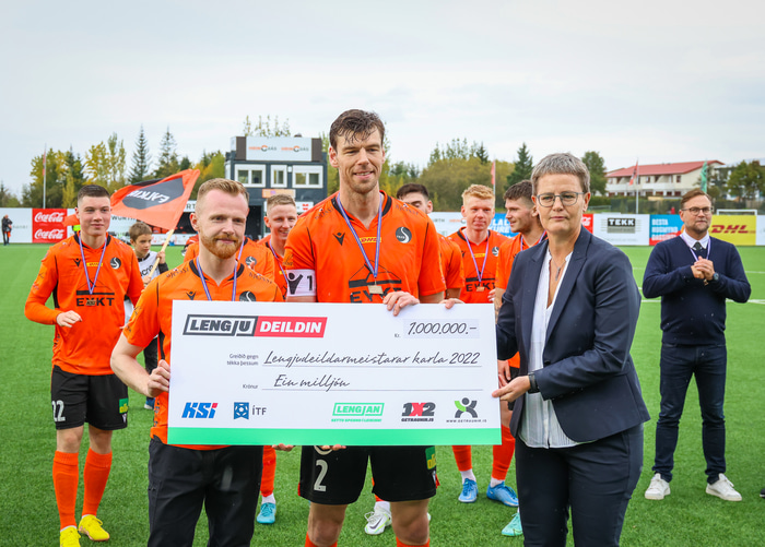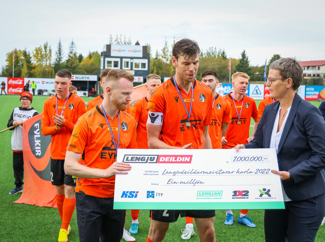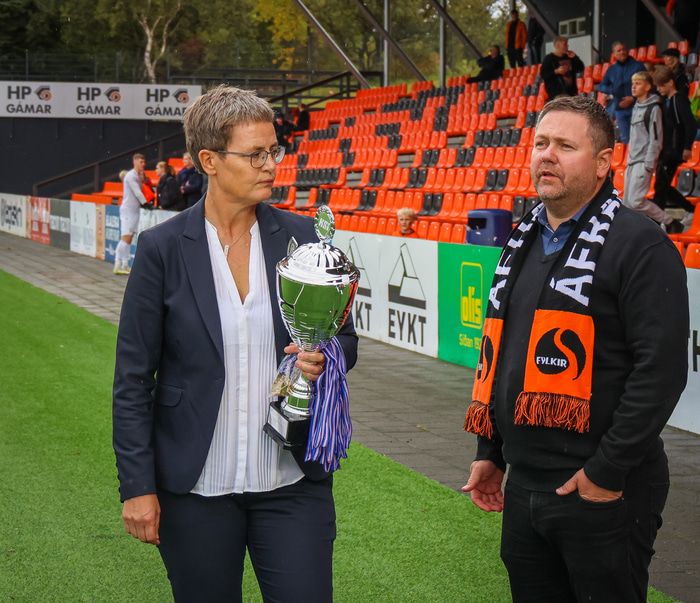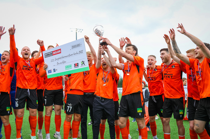 Fylkir vann í gær Lengjudeild karla eftir 4 - 0 sigur heima á Þrótti Vogum í næst síðustu umferð deildarinnar. Að leik loknum fengu þeir bikarinn fyrir sigur í deildinni. Hér að neðan má sjá fjölda mynda úr Árbænum.