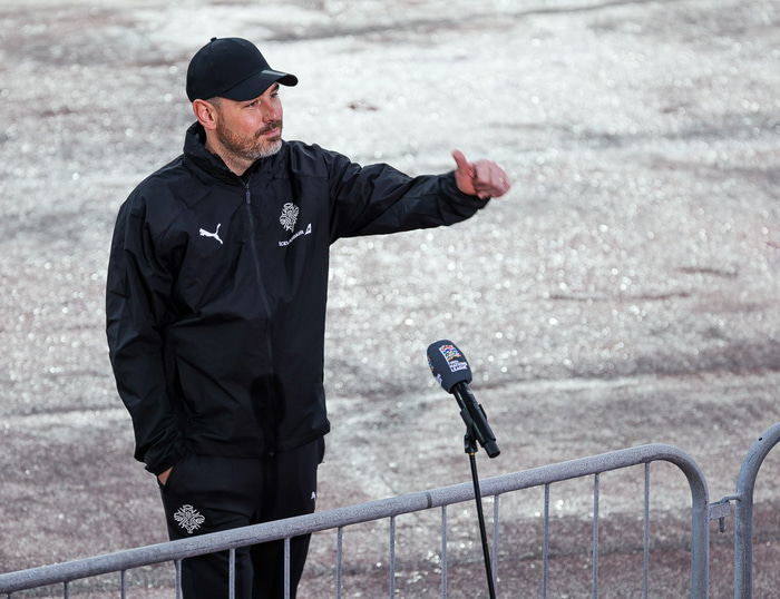 „Við megum ekki hleypa þeim af stað í 'possession' spil á okkar síðasta þriðjungi fyrst og fremst. Þeir mega alveg vera með boltann í öftustu línu ef við erum í 'shape-i'. Það eru líka tækifæri þegar þeir eru að spila frá markmanni og djúpt í öftustu línu að pressa á þá. Við þurfum að vera hugaðir eins og gegn Rúmeníu. Þeir vilja mikið halda í boltann og eru góðir í því."