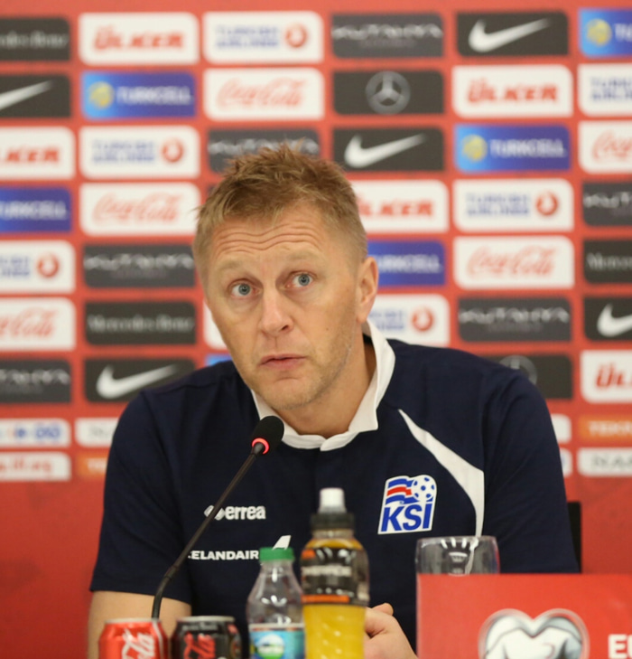 „Þeir eru í svipaðri stöðu og við, með leikmenn sem spila í Skandinavíu. Þeir eru með nýjan þjálfara sem er að koma með nýjar áherslur. Þeir eru að byrja upp á nýtt, með lið sem hefur ekki spilað mikið. Það er erfitt að leikgreina þá enda er það kannski ekki tilgangurinn með þessari ferð að fara djúpt ofan í það sem andstæðingarnir eru að gera," sagði Heimir um andstæðingana en leikurinn á morgun hefst klukkan 16:00 í beinni á RÚV.