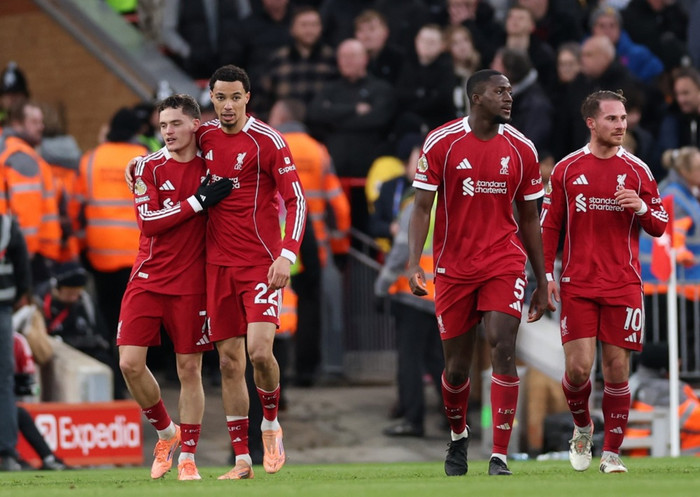 Einkunnir Liverpool: Mamardashvili (6), Frimpong (7), Van Dijk (6), Gomez (5), Robertson (6), Mac Allister (6), Szoboszlai (7), Jones (6), Chiesa (5), Gakpo (6), Ngumoha (7).