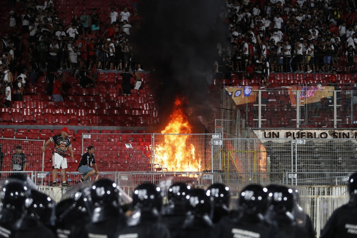 Harðkjarna stuðningsmannahópur Colo Colo hafði skapað vesen fyrir leikinn en lætin náðu hápunkti þegar stuðningsmennirnir reyndu að komast inn á völlinn í seinni hálfleik.