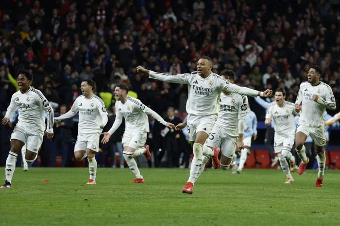 Real Madrid vann granna sína í Atletico Madrid eftir dramatíska vítaspyrnukeppni. Real Madrid mætir Arsenal sem komst örugglega áfram eftir sigur gegn PSV.