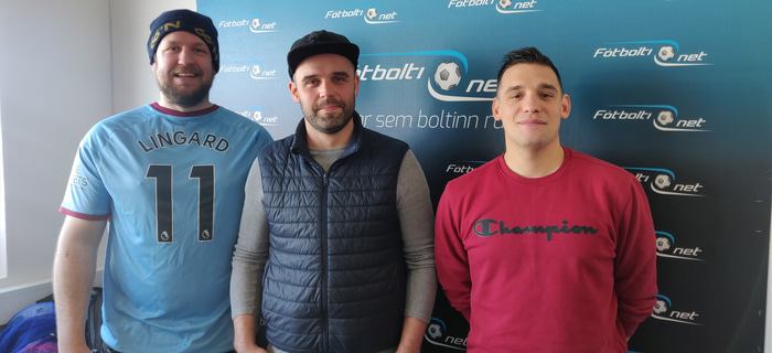Tómas Steindórsson, stuðningsmaður West Ham, og Guðmundur Gunnar Guðmundsson, stuðningsmaður Arsenal, og Mate Dalmay, markaðsstjóri Fótbolta.net, fóru yfir stöðuna í hlaðvarpsþættinum „Enski boltinn" í dag.