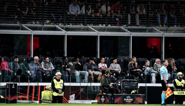 Sætin voru tekin í notkun í Evrópudeildarleiknum gegn Roma í gær og voru ítölsku rappararnir Ghali og Blanco meðal fyrstu gesta.