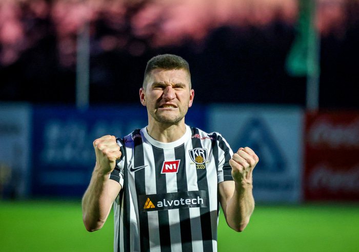 Benoný Breki Andrésson gerði út um leikinn nokkrum mínútum síðar. Stjörnumenn töpuðu boltanum á eigin vallarhelmingi og refsuðu KR-ingar. Boltinn inn fyrir á Benoný sem lét vaða. Árni var í boltanum en ekki nóg til að halda honum úr netinu.