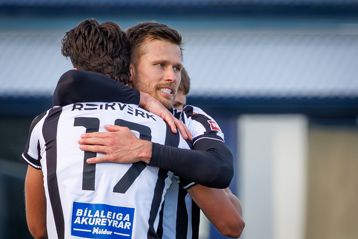 „Gabríel Hrannar með frábæra fyrirgjöf á fjærsvæðið. Eiður Gauti skallar boltann fyrir markið og þar er Arnór Ingvi sem skallar boltann í netið af stuttu færi."