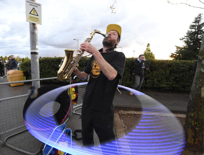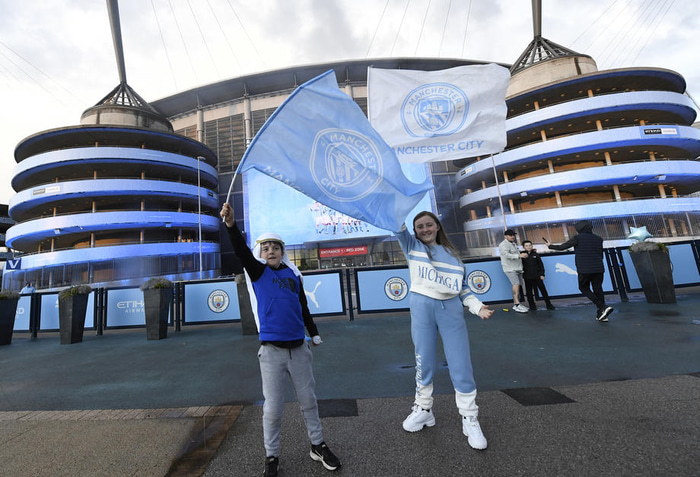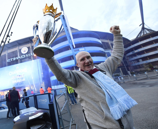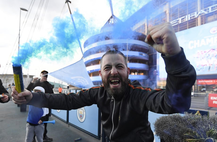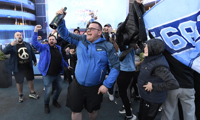 Eftir að titillinn var kominn í hús þá fagnaði hópur stuðningsmanna Manchester City fyrir utan heimavöll liðsins, Etihad.