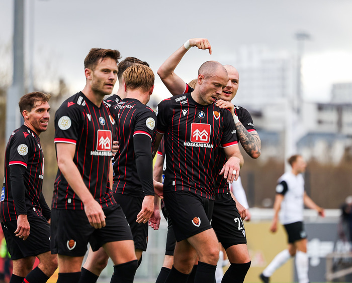 Jón Guðni tók sig til og lagði upp fyrra mark Víkings, en hann spilaði í vinstri bakverðinum. Liðsfélagarnir bentu á hann eftir markið