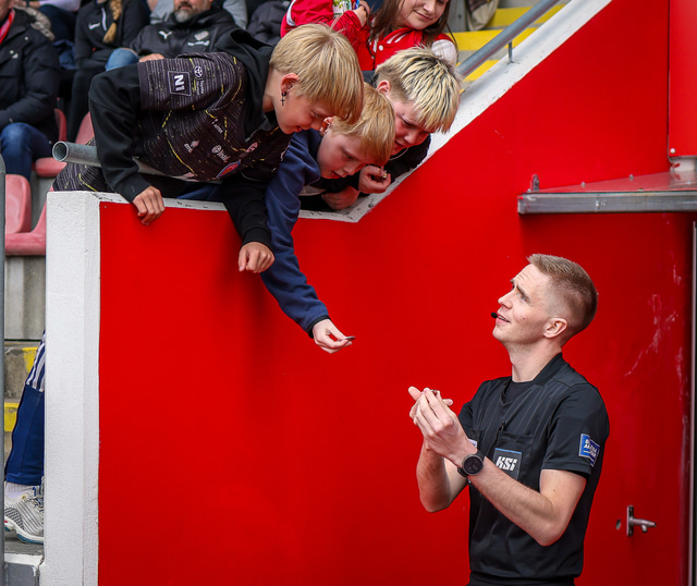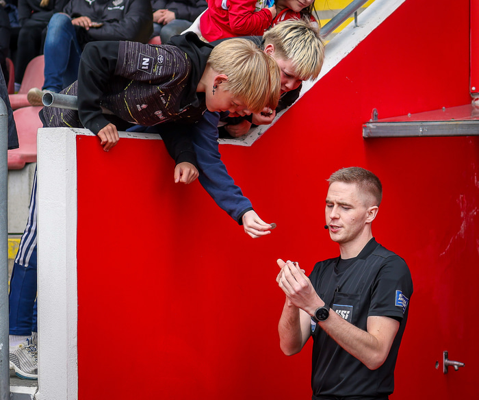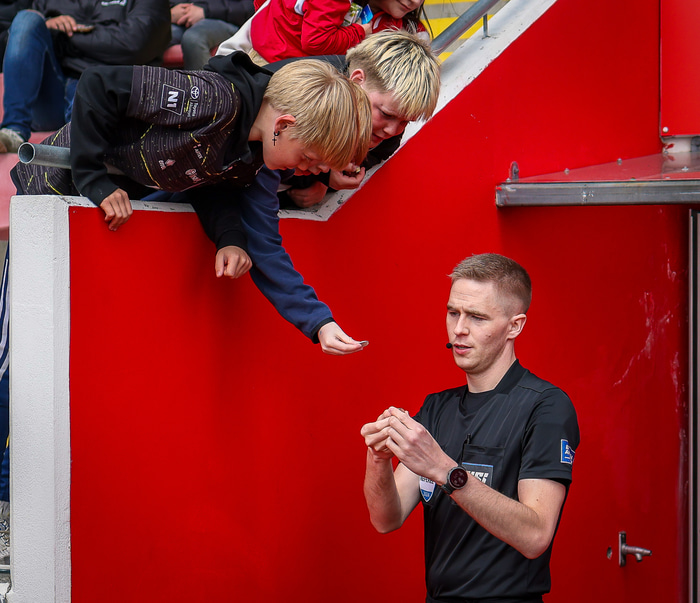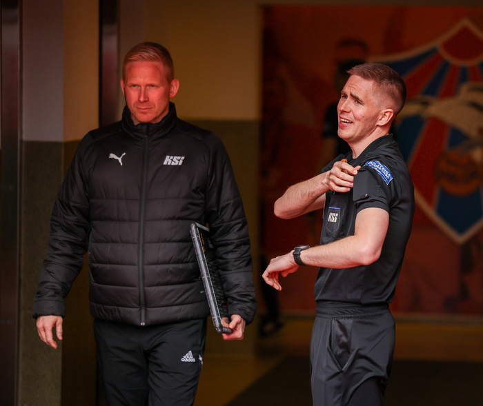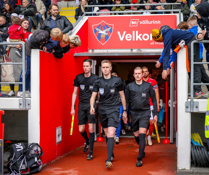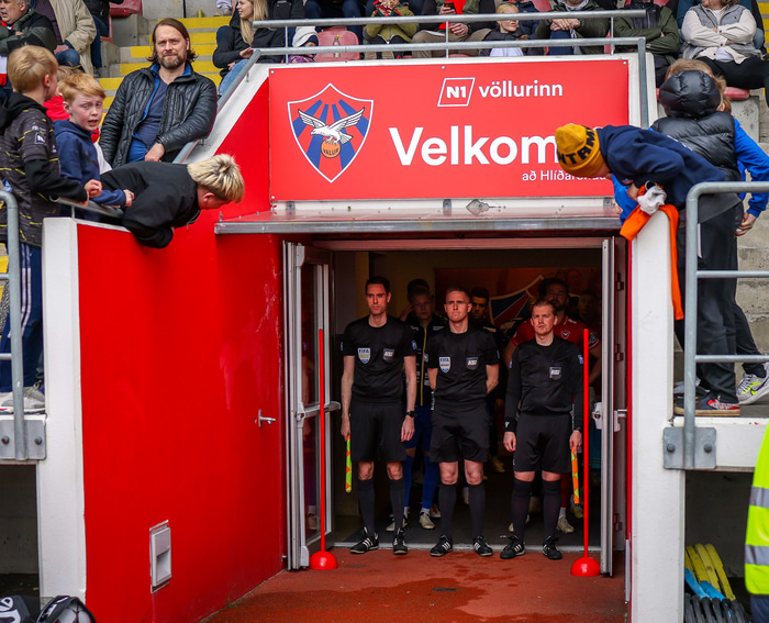 Helgi Mikael Jónasson dómara virðist hafa tileinkað sér þetta en fyrir leik Vals og KA í Bestu-deild karla í gær var hann kominn inn í göngin langt á undan kollegum sínum í dómarastéttinni og leikmönnum liðanna.