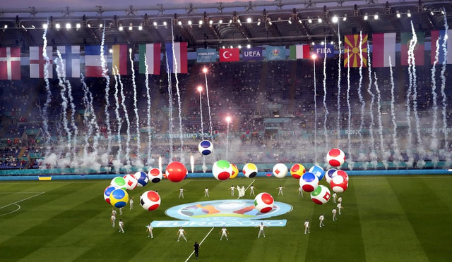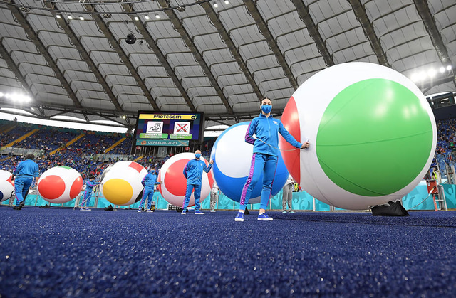 Setningarathöfn EM alls staðar fór fram á Ólympíuleikvangnum í Róm í gærkvöldi, fyrir opnunarleik Ítalíu og Tyrklands. Tenórinn Andrea Bocelli söng Nessun Dorma á magnaðan hátt og mikið var um dýrðir. Það var svo sannarlega ítölsk veisla í allt gærkvöld því Ítalía fylgdi setningarathöfninni eftir með því að rúlla yfir Tyrki 3-0. Fullkomið kvöld fyrir Ítalíu.