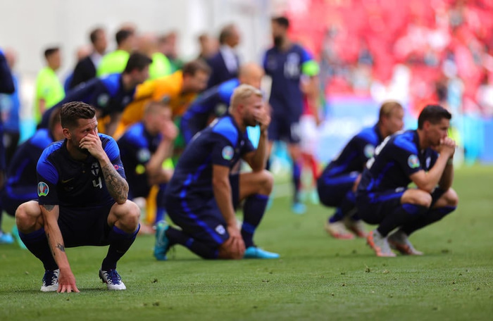 Leikmenn Danmerkur hópuðust í kringum Eriksen svo myndavélar á vellinum næðu ekki nærmynd af aðstæðum. Sjúkrastarfsmenn á vellinum virtust vera að framkvæma hjartahnoð og gáfu þeir Eriksen stuð.