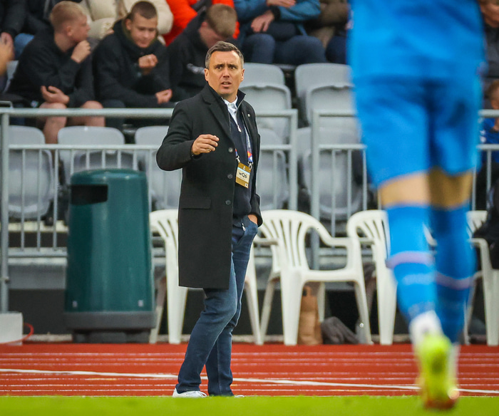 „Við erum á ákveðinni vegferð og allir sem vilja sjá það þeir sjá að það er góð þróun í liðinu og leikmönnunum. Ef þú myndir koma inn í hópinn myndir þú sjá að það er jákvæð orka í gangi. Eins og ég hef sagt oft, þetta tekur sinn tíma. Það er mikilvægt fyrir unga leikmenn að fá vinnufrið, ef við orðum það þannig. Ég sem þjálfari í þessari stöðu veit að það kemur gagnrýni. Sumir eru gagnrýnir en sumir sjá að það er margt jákvætt. Maður þarf bara að vinna í því, það er hluti af mínu starfi. Það eru forréttindi að vera í leiðtogahlutverki, annars væri ég ekki í þessu starfi."