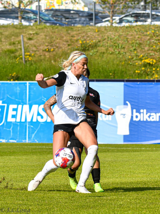 Sandra María Jessen tryggði Þór/KA sigur á FH í Mjólkurbikarnum í gær og liðið þar með komið í undanúrslitin. Jóhannes Long tók þessar myndir á leiknum.