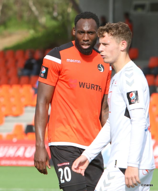 Geoffrey Castillion fór á vítapunktinn og setti boltann í markið af miklu öryggi þrátt fyrir að Vladan Djogatovic hafi farið í rétt horn.