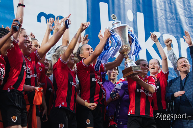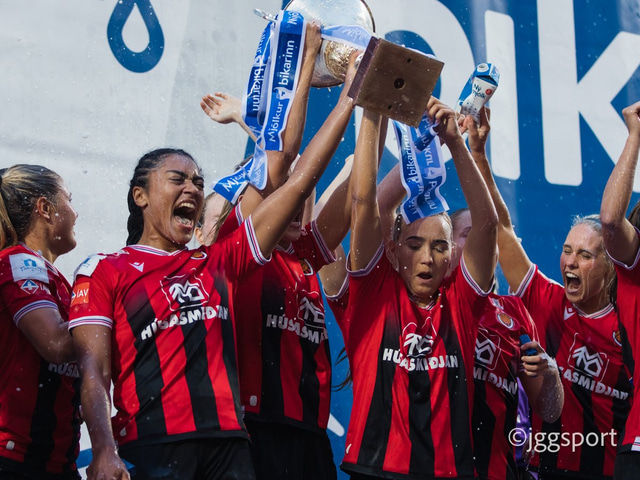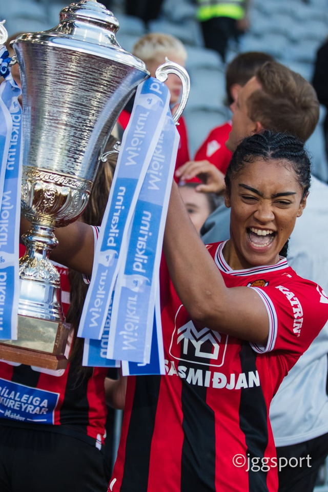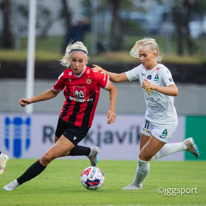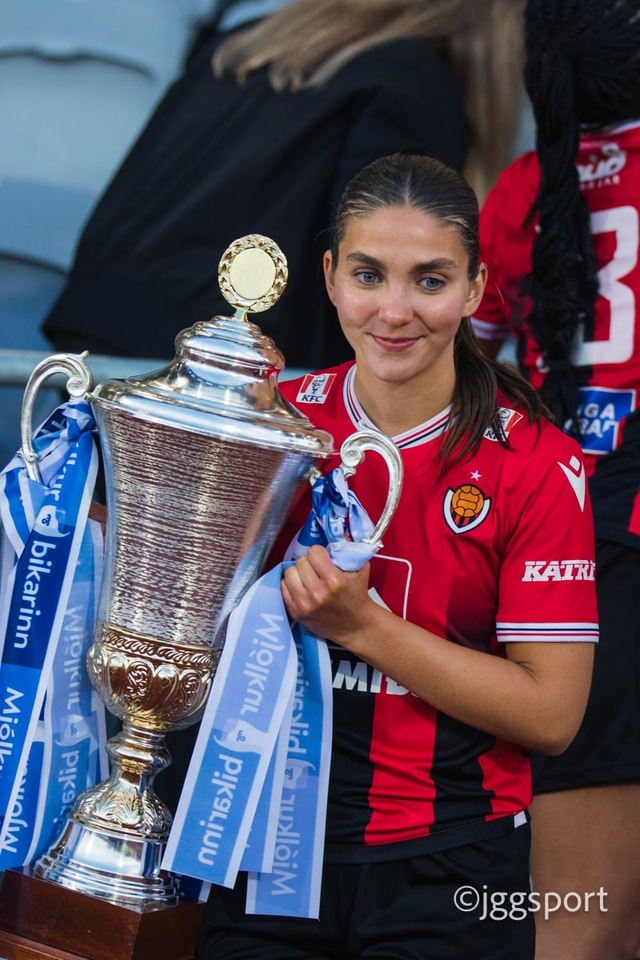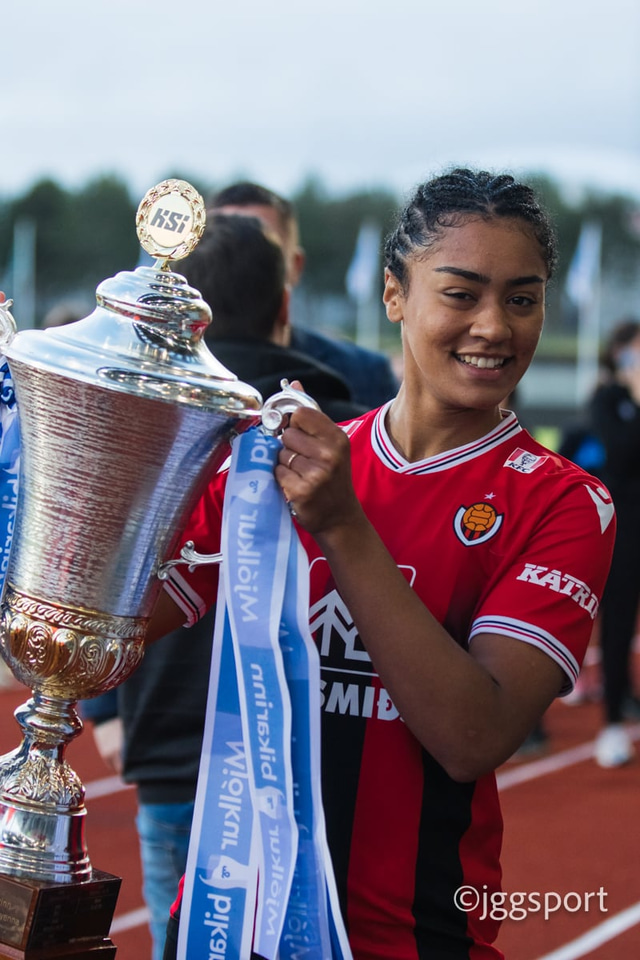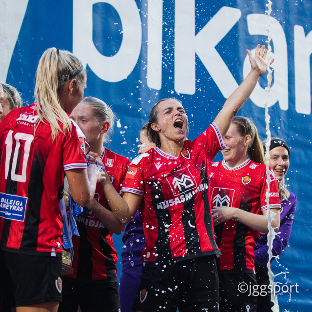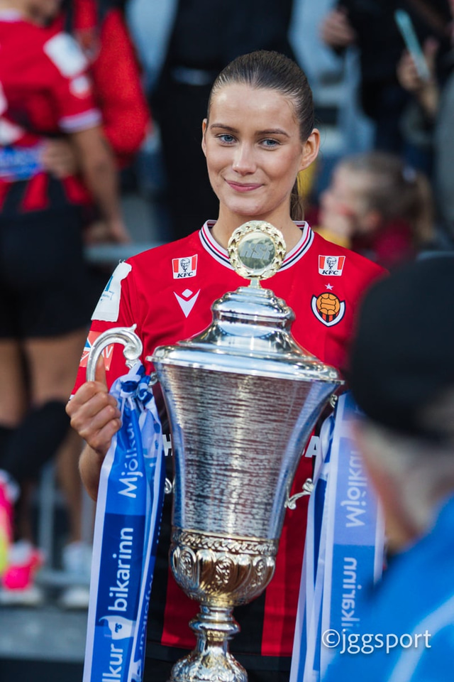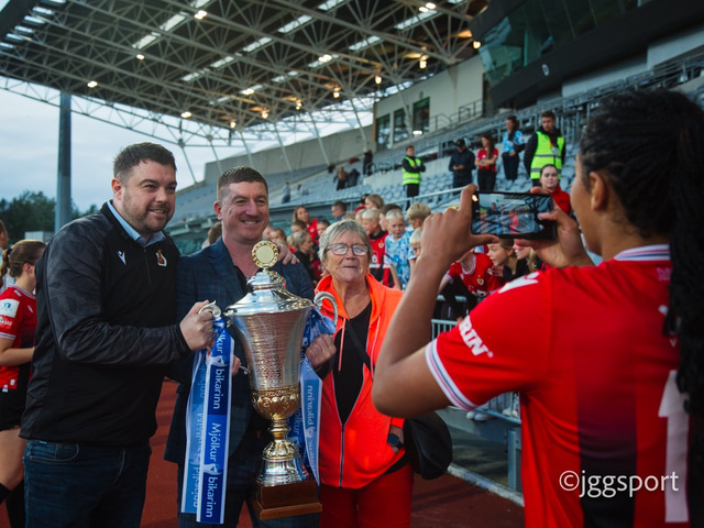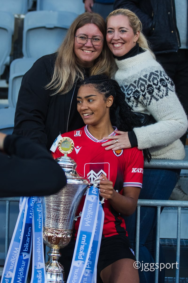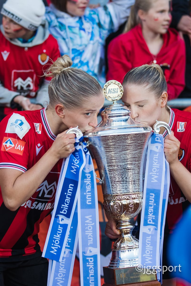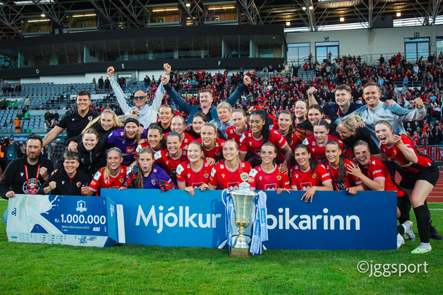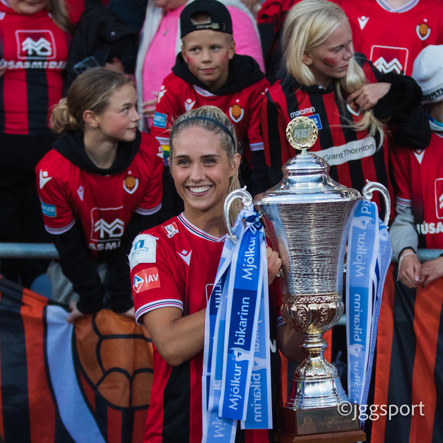 Víkingur vann 3 - 1 sigur á Breiðabliki í úrslitaleik Mjókurbikars kvenna í gærkvöldi. Jónína Guðbjörg Guðbjartsdóttir var þar og náði þessum myndum.