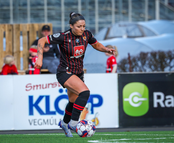 Shaina Ashouri bætti öðru markinu við gegn sínum gömlu félögum áður en flautað var til loka fyrri hálfleiks.