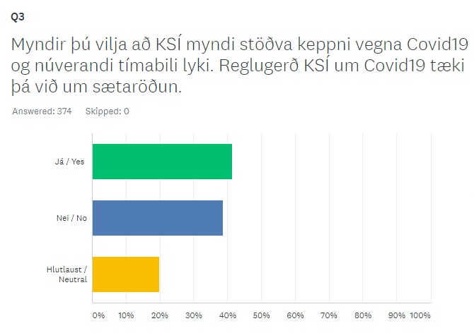 Meðal annars var spurt: Myndir þú vilja að KSÍ myndi stöðva keppni vegna Covid19 og núverandi tímabili lyki? Reglugerð KSÍ um Covid19 tæki þá við um sætaröðun.