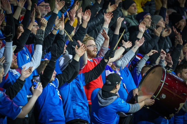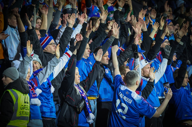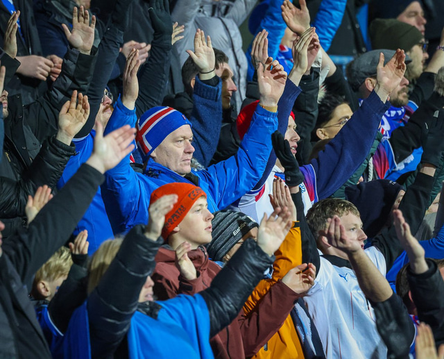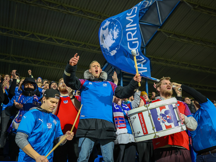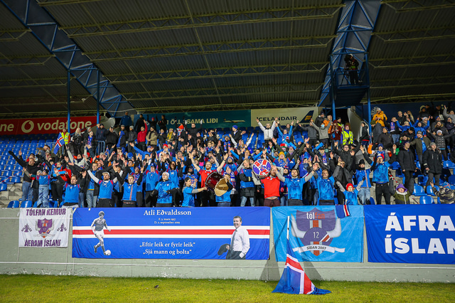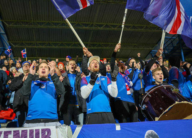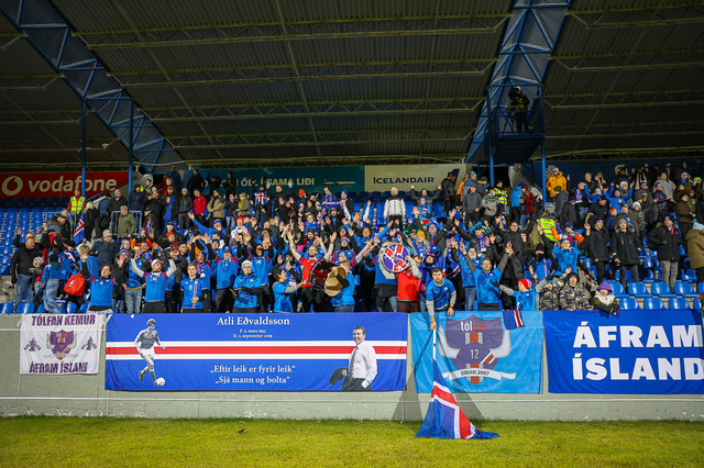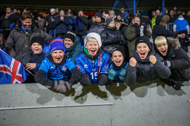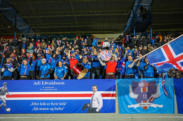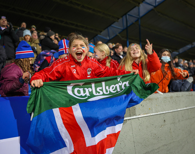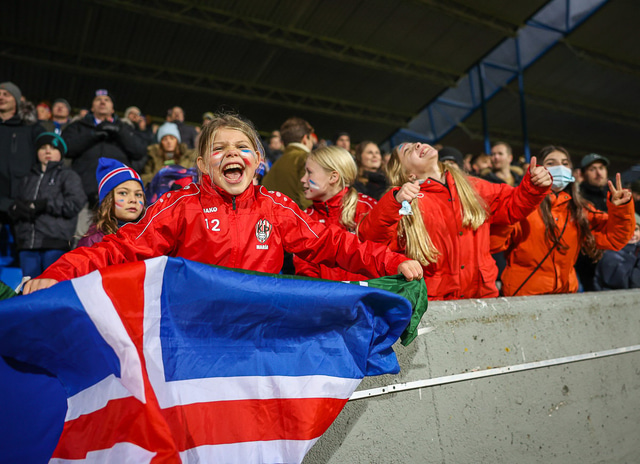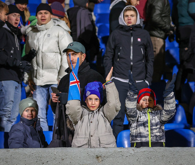 Ísland vann 4 - 0 sigur á Liechtenstein í undankeppni HM 2022 í gærkvöldi. Hér að neðan eru nokkrar myndir úr stúkunni á Laugardalsvelli.