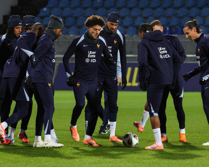 Það vantar nokkur stór nöfn í franska hópinn, þar á meðal sjálfan Kylian Mbappe sem er mættur aftur til Real Madrid eftir að hafa farið meiddur af velli gegn Aserbaídsjan. Eftir að hafa fylgst með hluta æfingarinnar í kvöld telja franskir fjölmiðlar að Jean-Philippe Mateta, sóknarmaður Crystal Palace, verði fremsti maður Frakka á morgun.