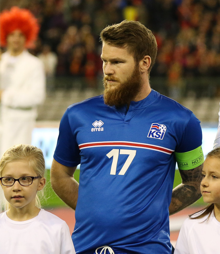 ,,Þetta var erfitt. Við vörðumst vel og náðum að skapa okkur nokkur góð færi líka og það var jákvætt," sagði Aron Einar eftir leikinn.
