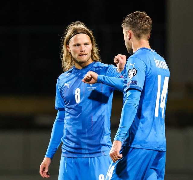 Aron Einar Gunnarsson, landsliðsfyrirliði, og Birkir Bjarnason eru báðir í byrjunarliði Íslands gegn Ungverjalandi í úrslitaleik um sæti á EM í Búdapest í kvöld.