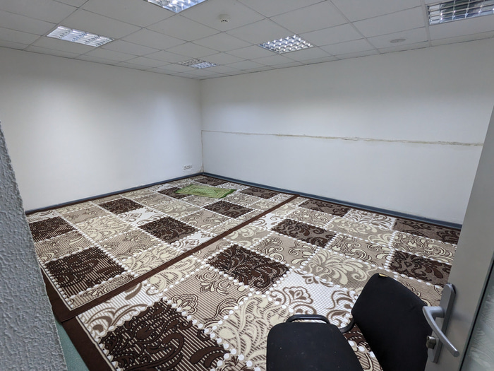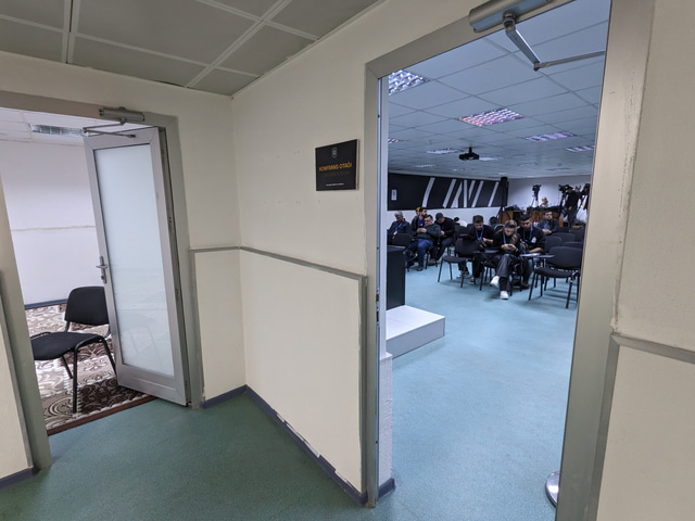 Við hlið fréttamannaaðstöðunnar á Neftci leikvangnum, þar sem Ísland og Aserbaísjan mætast á morgun er sérstakt bænaherbergi sem fjölmiðlamenn geta notað.