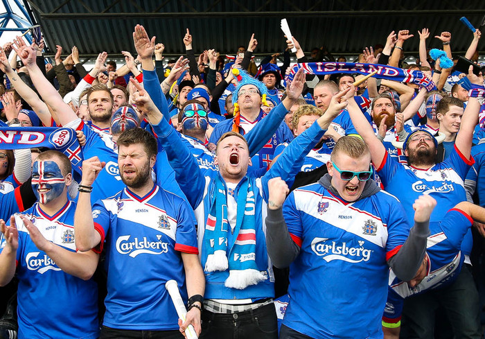 Tólfan, stuðningsmannahópur íslenska landsliðsins, kom saman á Ölveri til að fylgjast með þegar dregið var í riðla fyrir EM.