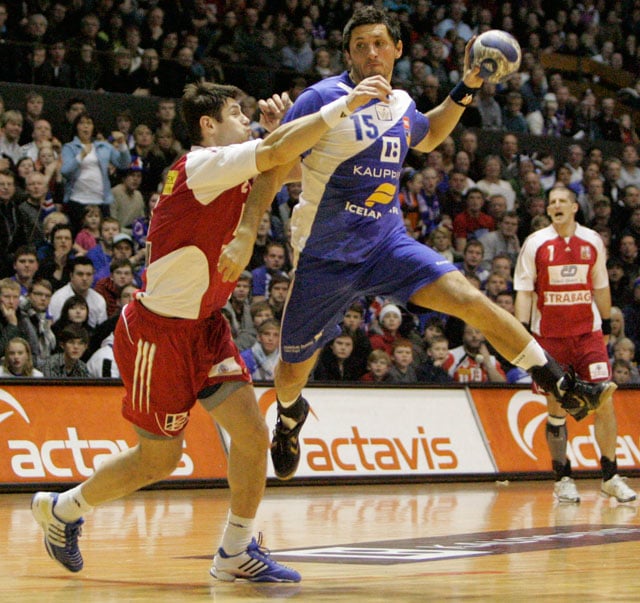 Alexander Petersson, landsliðsmaður í handbolta, átti frábæran leik þegar Ísland vann frækinn sigur á Dönum um helgina. Alexander tók landsliðsskóna aftur fram fyrir Evrópumótið, eftir rúmlega þriggja ára hlé.