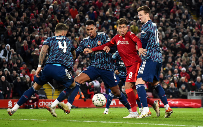 Ben White, varnarmaður Arsenal, hrósaði liðsfélögum sínum í hástert eftir markalausa jafnteflið gegn Liverpool í fyrri undanúrslitaleik enska deildabikarsins á Anfield í kvöld.