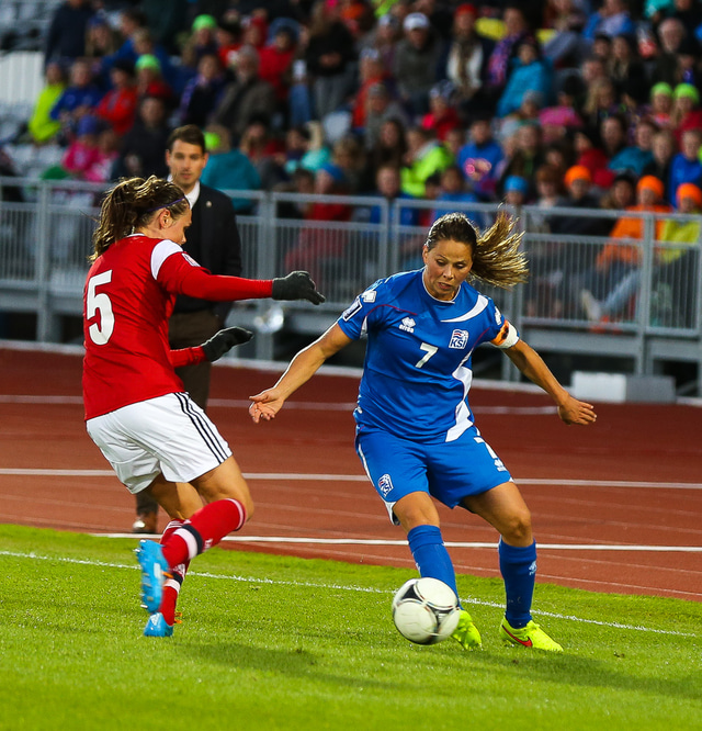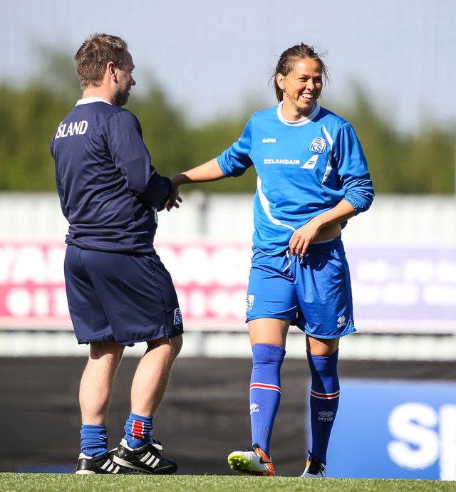 Hér fyrir neðan má sjá myndasyrpu frá hennar landsliðsferli sem hófst fyrir 16 árum síðan.