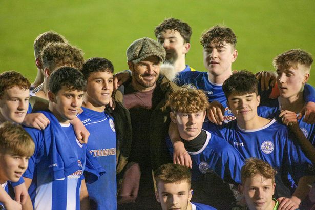Ungir leikmenn U18 ára liðs Clevedon voru í skýjunum þegar goðsögnin David Beckham mætti til að horfa á leik með liðinu.