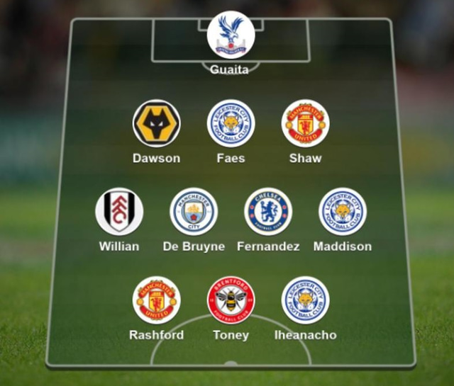 Leicester á þrjá fulltrúa í liði umferðarinnar, eftir 4-1 sigur gegn Tottenham. Það eru tveir frá Manchester United eftir 2-0 útisigur gegn Leeds. Það er að vanda Garth Crooks, sérfræðingur BBC, sem sér um að velja.